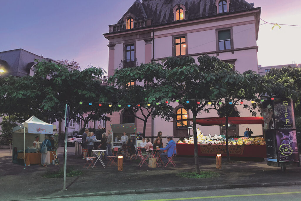 Die Lokalgruppe 4056 besucht den Hebelplatzmärt! Wir sprechen mit den Besucher:innen, geniessen die Abendstimmung und tauschen uns über das Quartier und eine klimagerechte Zukunft aus.